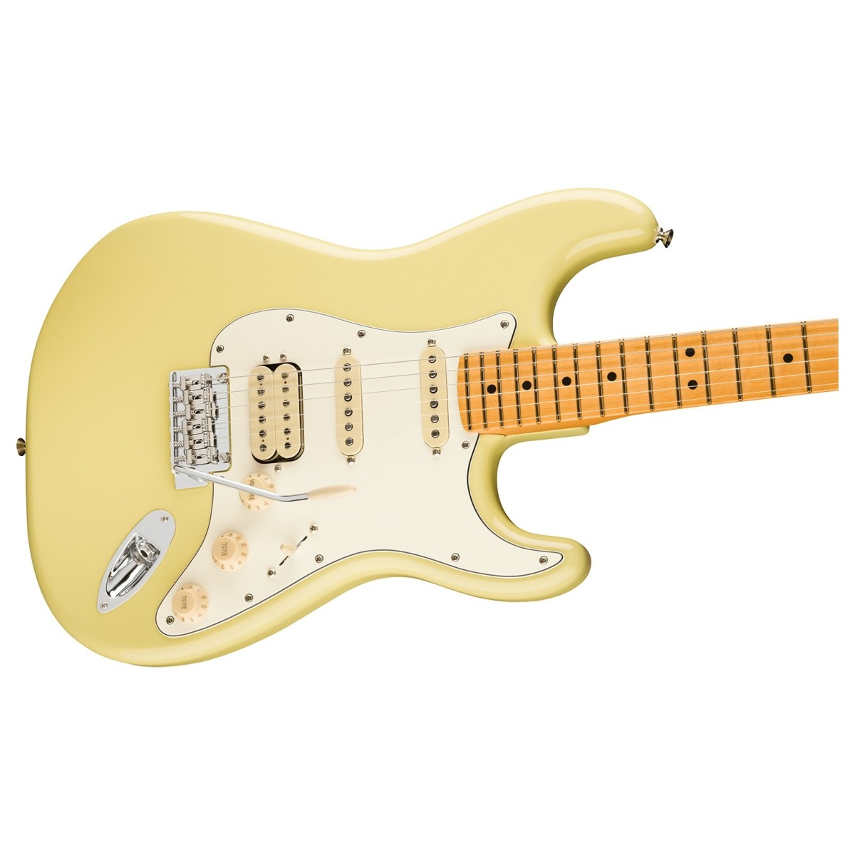 The Fender Player II Stratocaster HSS, Maple Fingerboard is a fusion of traditional aesthetics and modern functionality, designed to elevate any performance. This guitar features a versatile HSS pickup configuration, combining Player Series Alnico V single-coils and an Alnico II humbucker, perfect for delivering crisp, articulate highs and robust lows. The 5-way blade switch offers a range of tonal possibilities, from smooth neck pickup tones to aggressive bridge outputs.