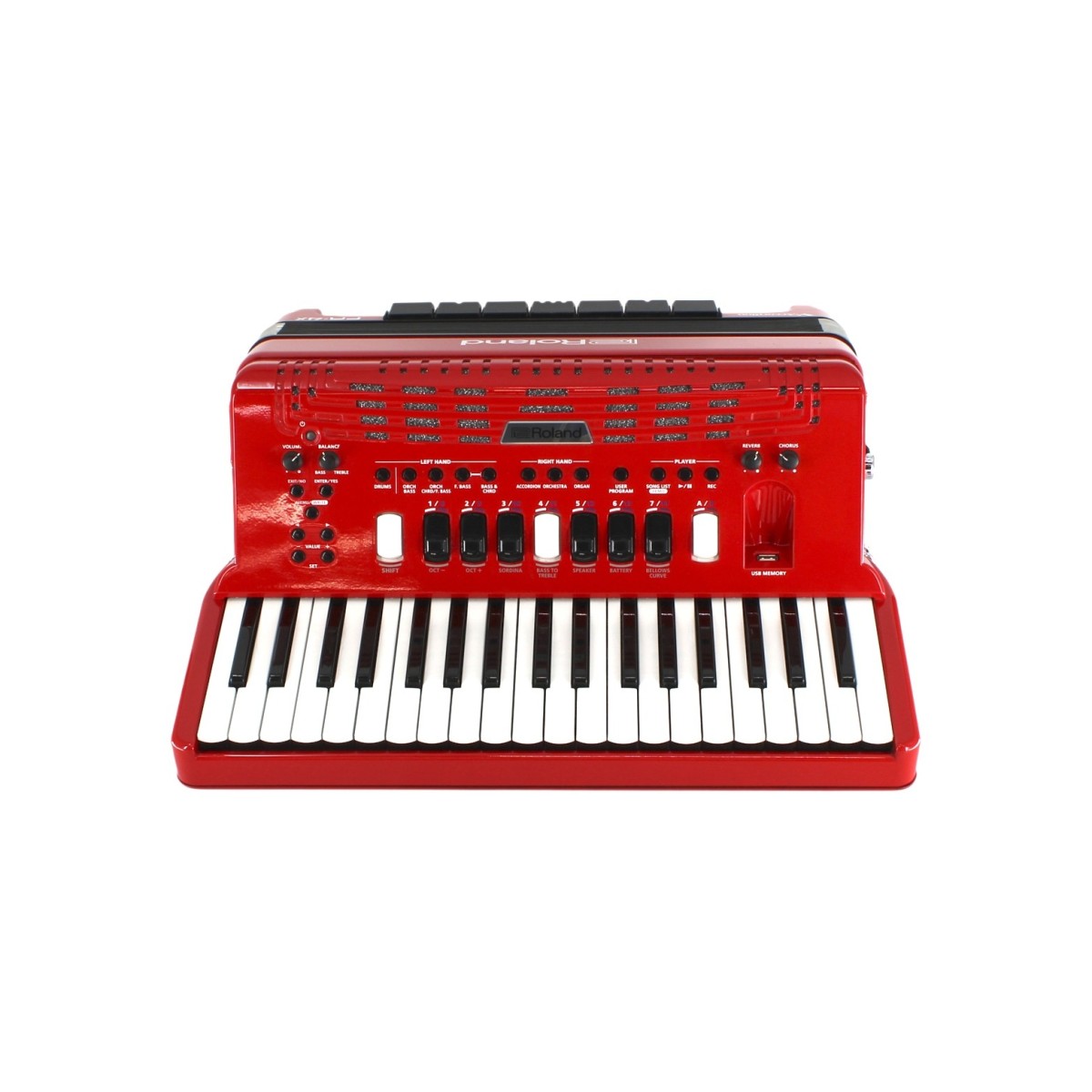 This acoustic playing v-accordion features a layout which includes a mix of familiar features as well as some unfamiliar components too. The 37 velocity-responsive keys and 120 left-hand buttons feel recognisable, while the pressure-sensing bellows circuitry allows players to customise the v-accordion to their own playing style. This new digital v-accordion is ideal for travelling musicians, not only because of its compact and lightweight design but because of the onboard technology and the option of powering from an AC adaptor or AA batteries.