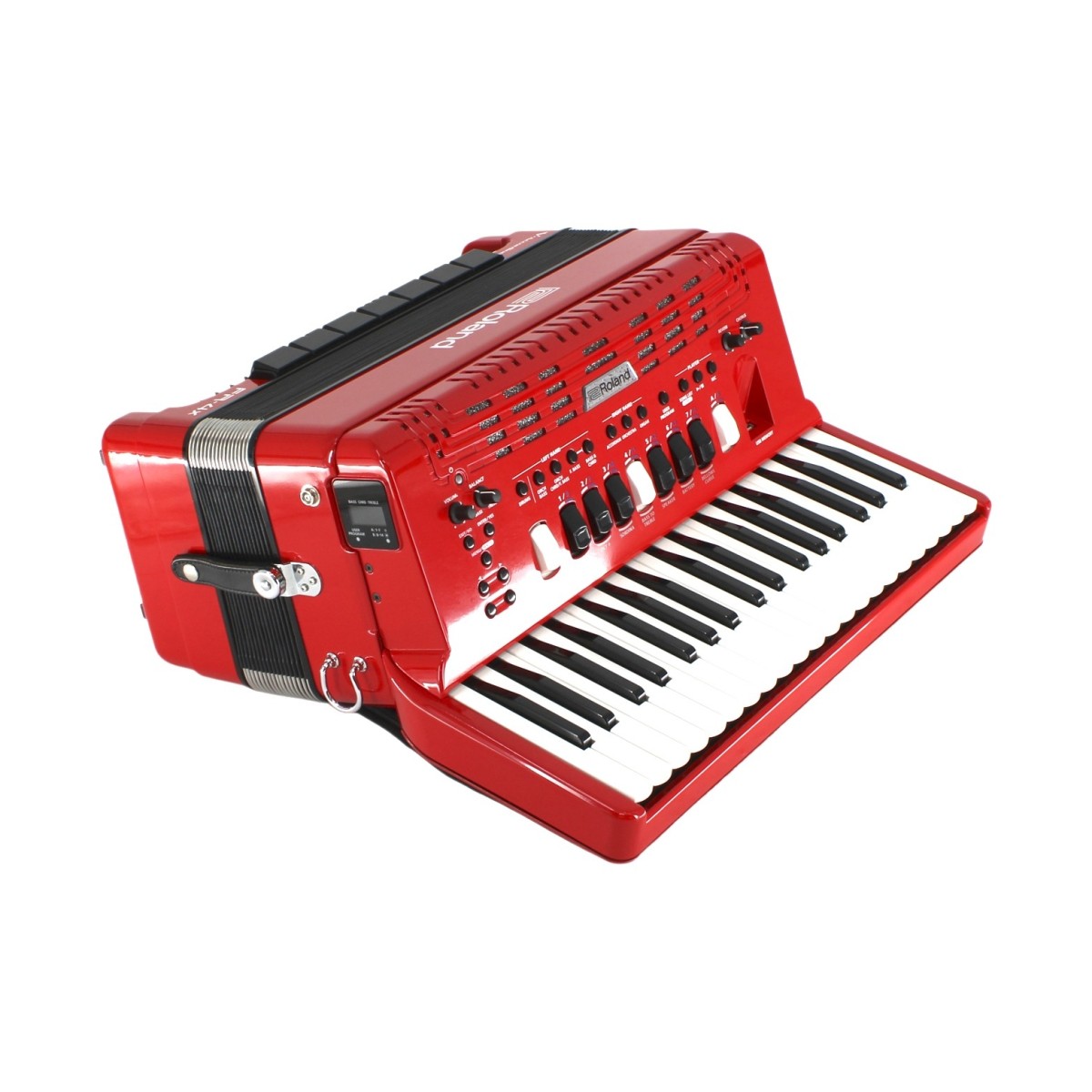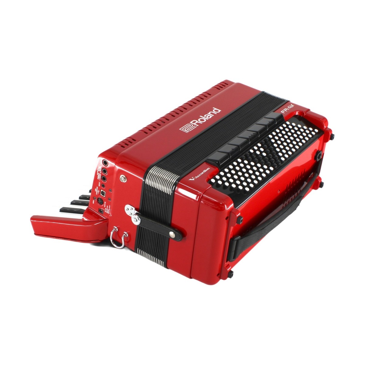 The FR-4X comes with a powerful sound engine that has been carried over from the previous FR-8X model. This traditional acoustic v-accordion offers just one dedicated sound and puts an entire orchestra in the players hands, with a variety of onboard sounds that support their individual styles of music. With 100 preset accordion sets and 162 orchestral sounds the FR-4X v-accordion provides players with all kinds of possibilities. This model is an extension of Roland's latest keyboards, transforming the accordion into an organ, string quartet, or bass guitar. Players can add chorus, reverb, and rotary effects, or accompany their melody lines with the onboard drum sounds. This model introduces so much flexibility for an avid player who wants to experiment in all music styles, or focus for a professional who wants to practise their own unique style. For more sound effects and customisation processes visit the official Roland website.