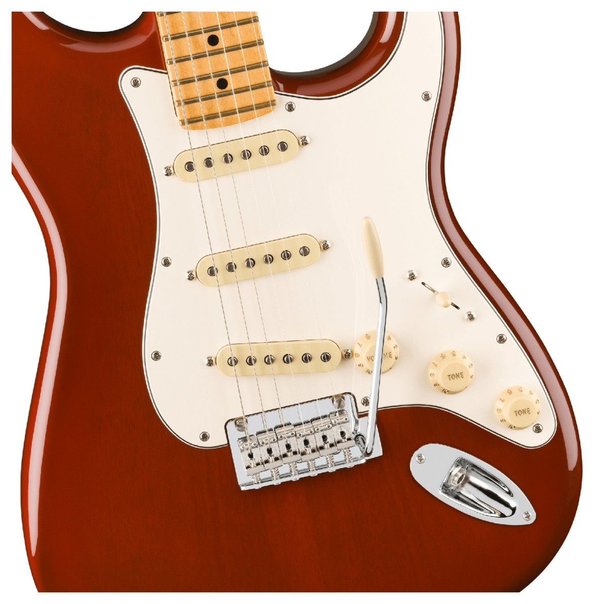 II Fender Player II Stratocaster, Lönngreppbräda är en scenklar gitarr som kombinerar den ikoniska Fender charmen med moderna funktioner. Denna modell är utrustad med en kammad mahognykropp för att säkerställa en lätt känsla och rik, klingade ton. Den är utformad för dagens spelare och har en modern C-halsprofil och en greppbräda med 9,5-tums radie och rullade kanter, vilket ger snabb och smidig spelbarhet och en bekväm känsla. Player Series Alnico V Single-Coil-pickuperna erbjuder ett mångsidigt utbud av toner, från kristallklara höga toner till strama låga toner, perfekt för alla genrer. Ett 2-punkts synkroniserat tremolosystem ger exakt stämningsstabilitet och möjliggör uttrycksfullt vibrato och vågade dive bombs.